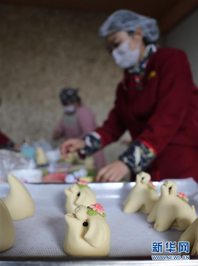 1月8日,工作人員在手工制作花餑餑。 新華社記者 丁洪法 攝