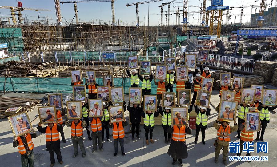 1月9日,中建一局北京城市副中心周轉(zhuǎn)房項目工地施工單位的職工在展示自己的照片。 當日,由北京市總工會主辦的工會“兩節(jié)”送溫暖活動之一的“把微笑帶回家,為最美勞動者點贊”大型公益活動,在中建一局北京城市副中心職工周轉(zhuǎn)房項目工地舉行。眾多勞動者獲贈“微笑”肖像照和保溫壺、毛巾等新春“大福包”。 新華社記者 李欣 攝