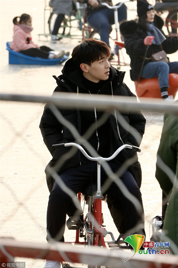 2019年1月9日,北京,鄧倫、馬思純現(xiàn)身后?;鶊?chǎng),騎冰車(chē)拍攝新劇《加油你是最棒的》。寒冷的北京,二人身著單薄的劇中服裝現(xiàn)身拍攝片場(chǎng),不顧嚴(yán)寒超敬業(yè)。