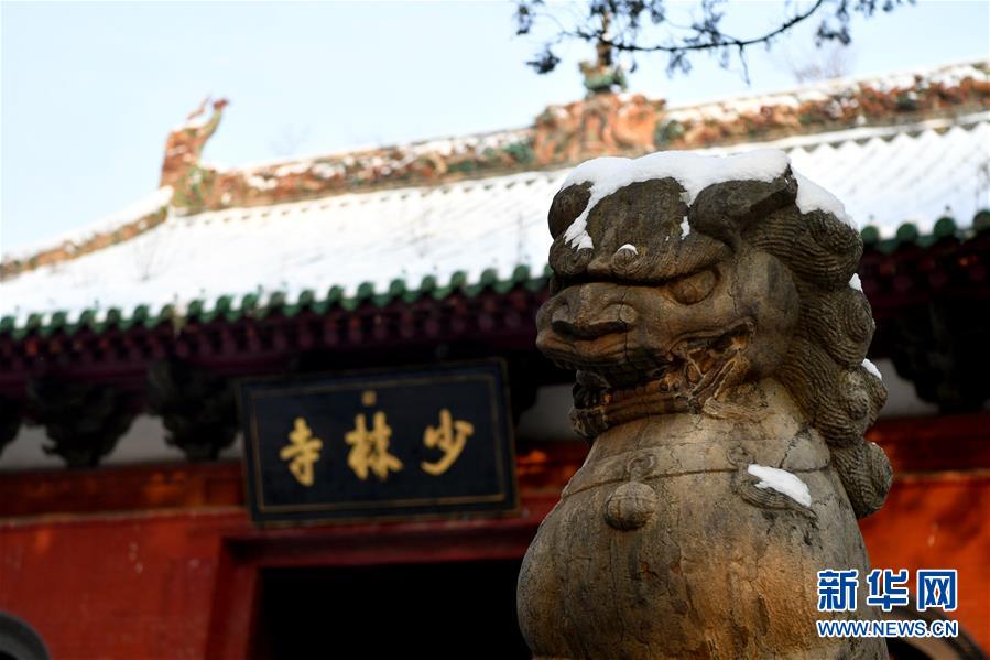 1月10日無人機(jī)拍攝的少林寺一景。當(dāng)日,雪后初霽,河南登封少林寺分外秀美。新華社記者 李嘉南 攝