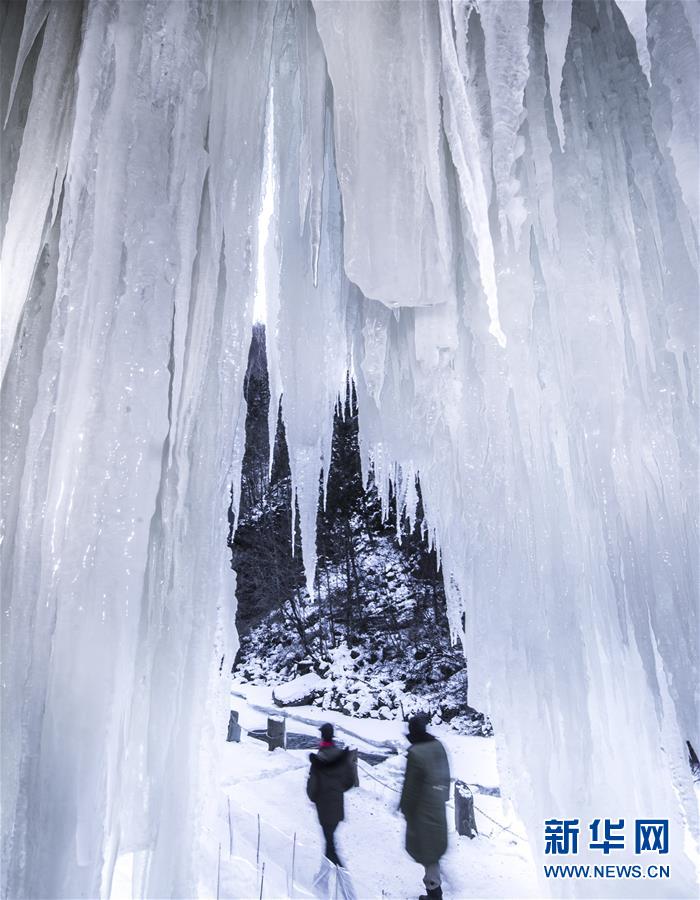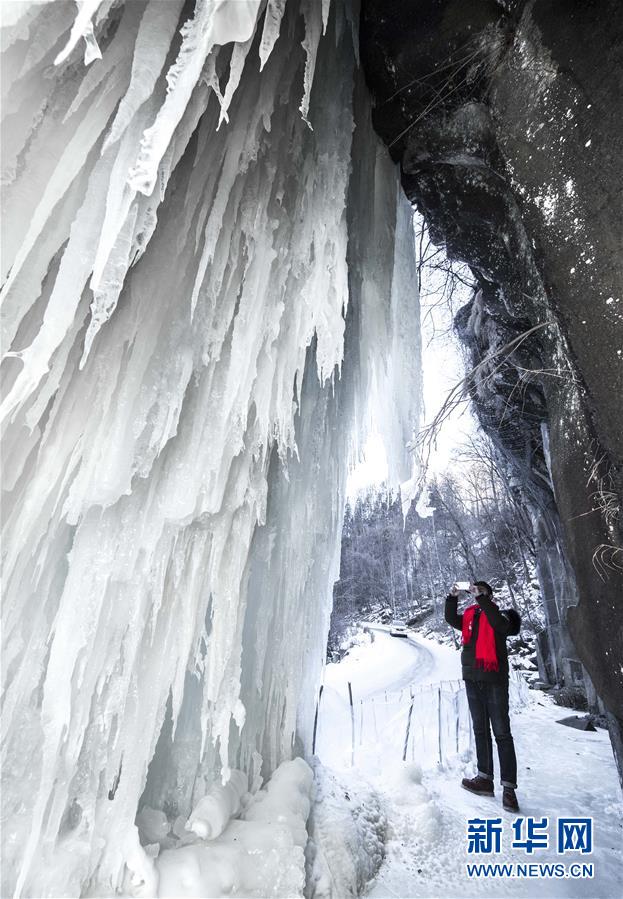 1月9日,游客在云臺山景區(qū)觀賞冰瀑景觀。 近日,受降溫影響,位于河南省焦作市的云臺山景區(qū)出現(xiàn)冰瀑景觀,奇特壯美。 新華社記者 李嘉南 攝
