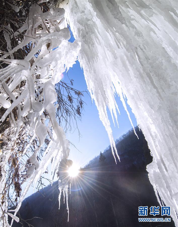 位于吉林省長白縣的十五道溝望天鵝風(fēng)景區(qū),屬長白山余脈。這里生態(tài)原始,古樹參天,瀑飛泉涌,怪石嶙峋,素有“北方九寨溝”的美譽(yù)。 冬日里,在形態(tài)各異的巖墻、巖柱間流淌的溪水因低溫凝固,仿若時間凍結(jié),一切流動的美便以湍急之勢凝于石壁,形成了半冰半水、亦靜亦動的冰瀑景觀,盡顯大自然的鬼斧神工。 新華社記者張楠攝