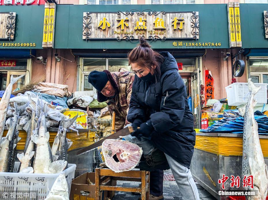 黑龍江魚販子變木匠 200斤凍魚鋸開賣
