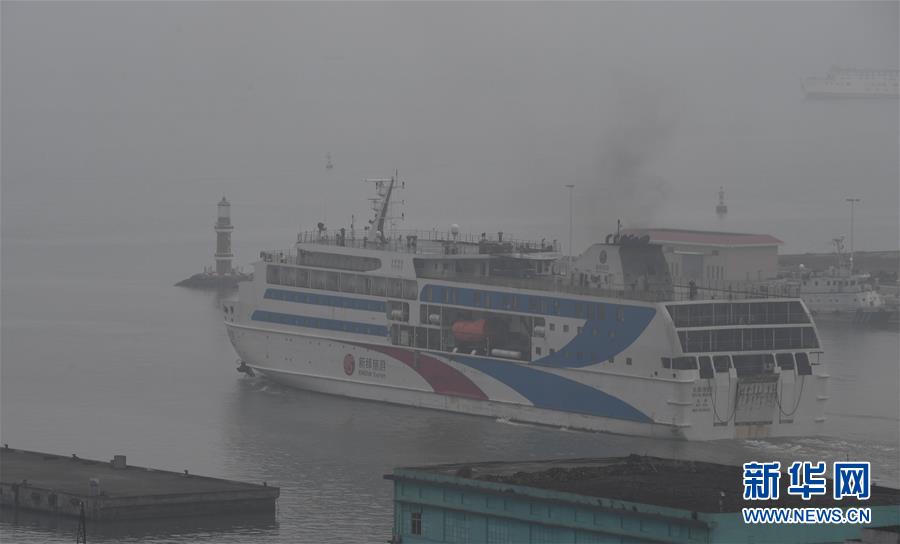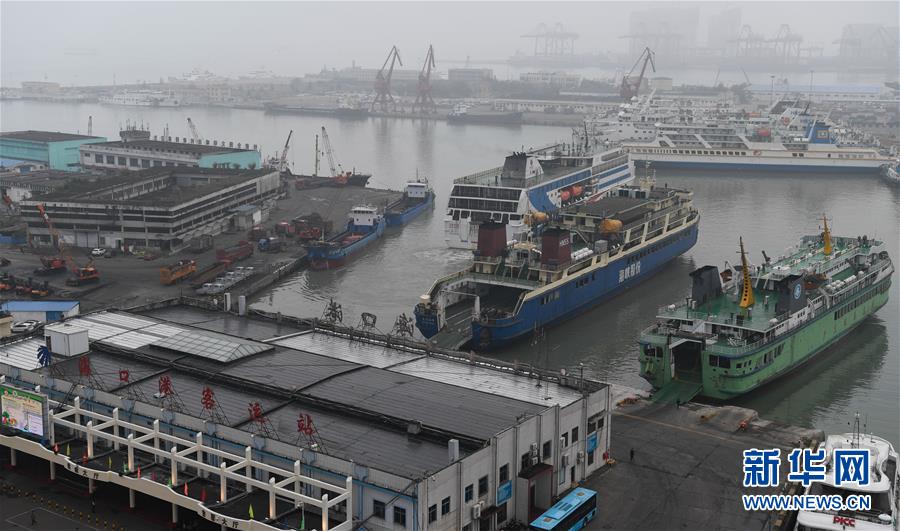 1月13日,一艘客滾船從??谛阌⒏垴偝觥?新華社記者楊冠宇攝