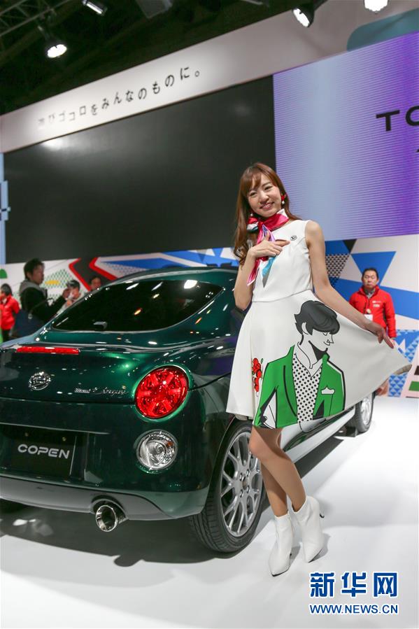 1月13日,在日本千葉東京汽車沙龍現(xiàn)場,模特展示參展車輛。 新華社記者 馬曹冉 攝