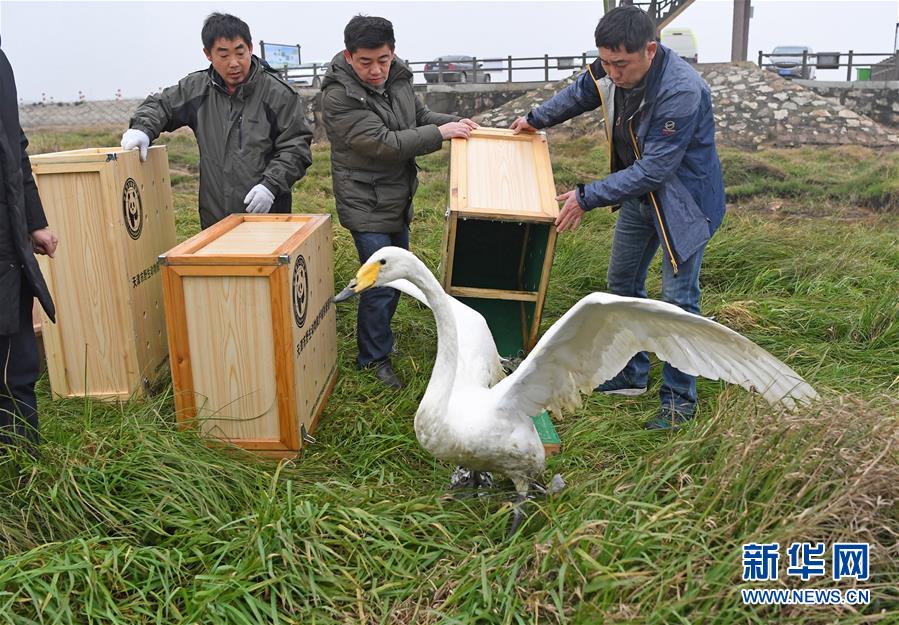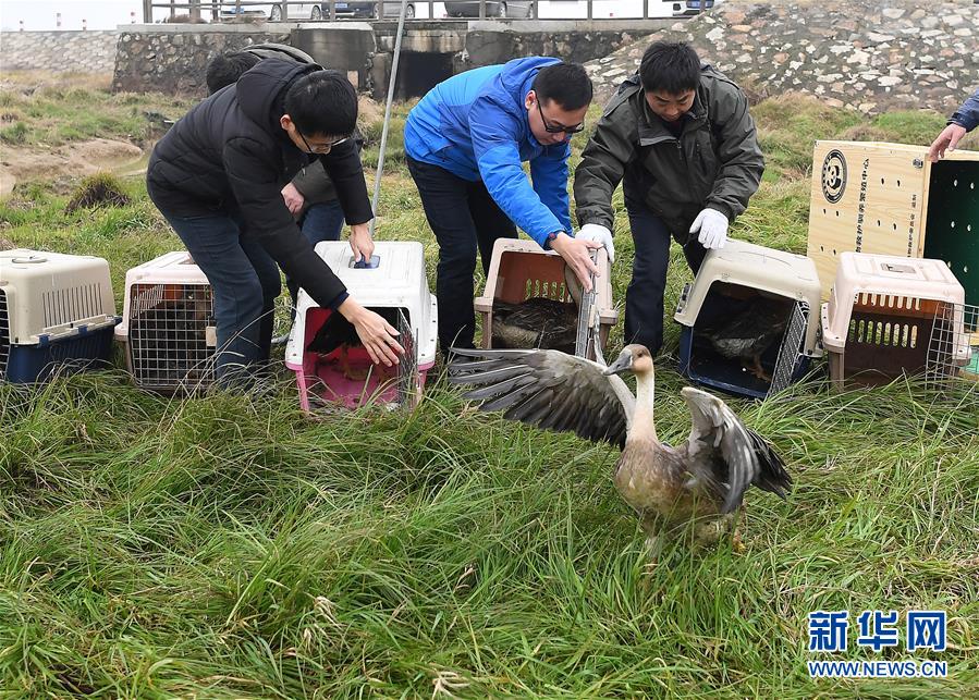 1月14日,工作人員正在放飛候鳥(niǎo)。 新華社記者 萬(wàn)象 攝