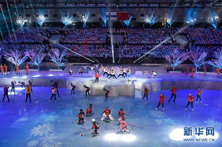 1月15日,演員在開(kāi)幕式上表演。 當(dāng)日,“2019中芬冬季運(yùn)動(dòng)年”開(kāi)幕式在北京首鋼冰球館舉行。 新華社記者申宏攝
