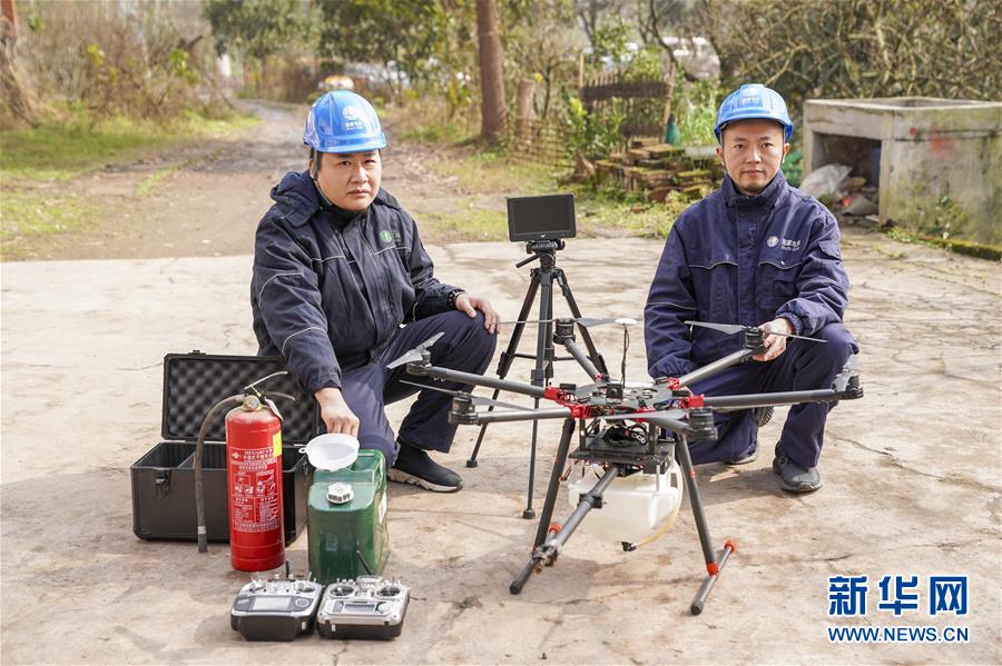 1月16日,噴火清障無人機(jī)的研發(fā)負(fù)責(zé)人何濤(右)和同事晏新展示噴火清障無人機(jī)。 1月16日,經(jīng)過3年多的研發(fā)和測試,重慶首臺噴火清障無人機(jī)在國網(wǎng)重慶永川供電公司無人機(jī)班正式投用。這臺多旋翼無人機(jī),通過搭載帶有燃料箱、油泵、自動(dòng)點(diǎn)火裝置的噴火吊艙任務(wù)模塊,可以對影響高空電力線路安全的飄掛物進(jìn)行定點(diǎn)障礙清除作業(yè)。 據(jù)噴火清障無人機(jī)研發(fā)負(fù)責(zé)人何濤介紹,過去高空清除異物主要靠人工進(jìn)行,為保證安全經(jīng)常需要停電作業(yè),因此他們結(jié)合實(shí)際工作經(jīng)驗(yàn)和高空電力線路的自身特點(diǎn),設(shè)計(jì)和制造出了噴火清障無人機(jī)。2018年測試期間,國網(wǎng)重慶永川供電公司無人機(jī)班在多種環(huán)境下成功執(zhí)行了50多次高空電力線路清障作業(yè)。 新華社記者 劉潺 攝