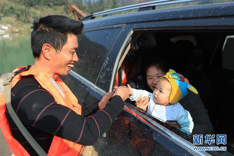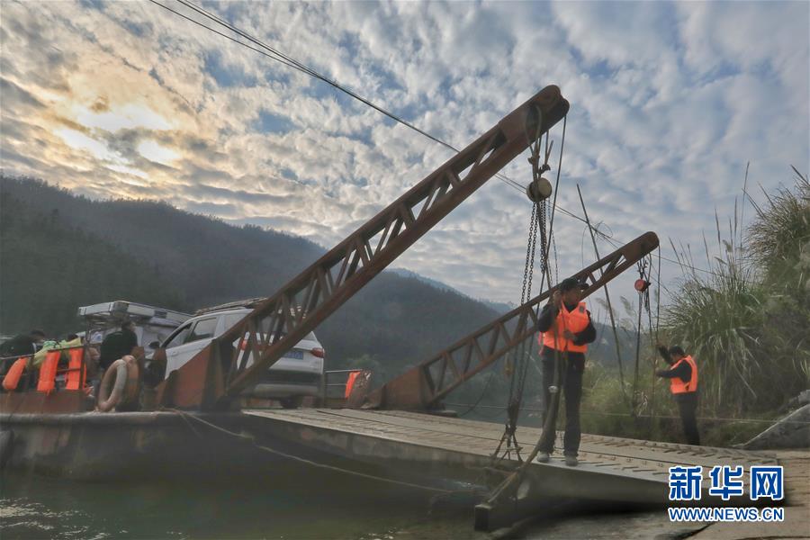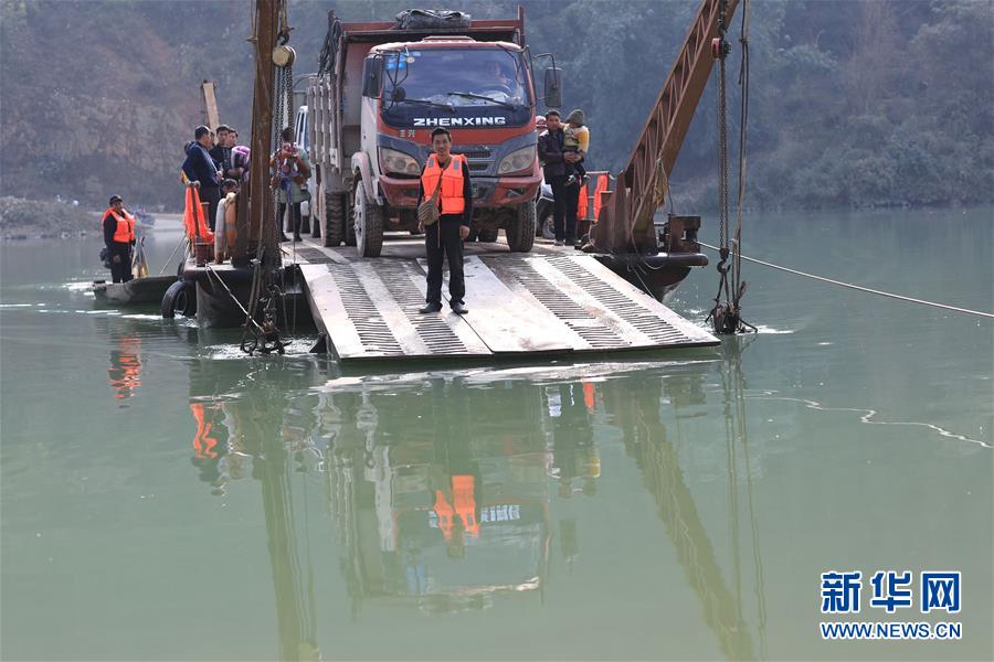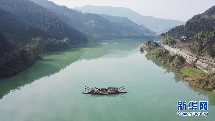 1月22日,渡輪在八吉渡口接送群眾(無人機拍攝)。新華社記者 歐東衢 攝