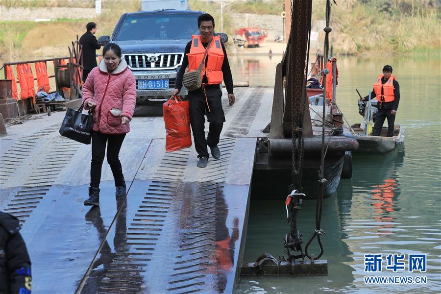 1月22日,何銀祥在渡船上指揮乘客上船。 新華社記者 歐東衢 攝