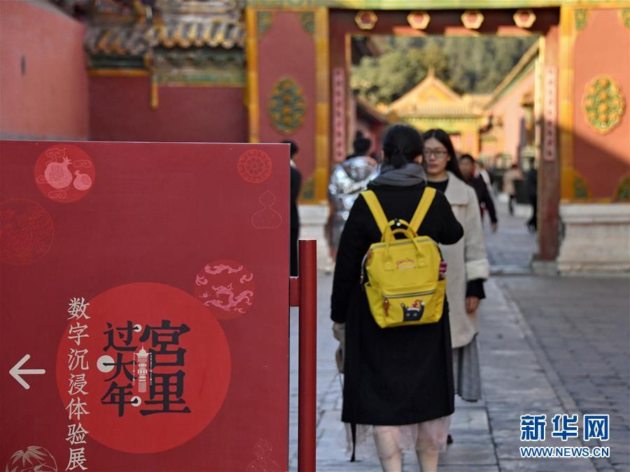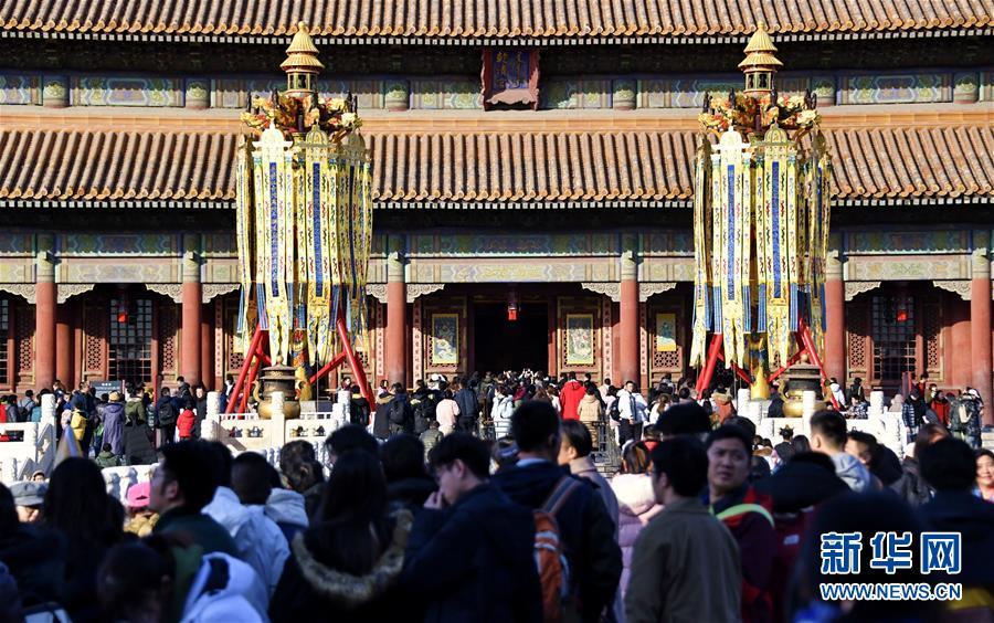 1月25日,游人在故宮內(nèi)參觀游覽。 春節(jié)將至,北京故宮博物院內(nèi)張燈結彩,到處懸掛著宮燈、萬壽燈、年畫、門神、福字等古代宮廷節(jié)日裝飾品,讓來自國內(nèi)外的游人感受到濃濃的年味。 新華社記者 李欣攝