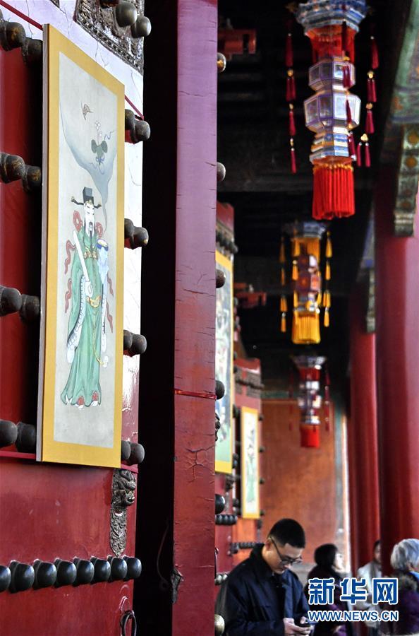 這是在故宮內(nèi)拍攝的古代宮廷節(jié)日裝飾品(1月25日攝)。 春節(jié)將至,北京故宮博物院內(nèi)張燈結彩,到處懸掛著宮燈、萬壽燈、年畫、門神、福字等古代宮廷節(jié)日裝飾品,讓來自國內(nèi)外的游人感受到濃濃的年味。 新華社記者 李欣攝