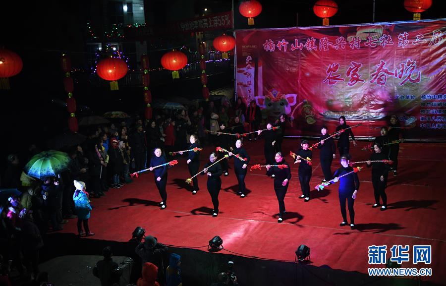 1月31日,隆興村七社村民在“農(nóng)家春晚”上表演打蓮簫。 當(dāng)日,重慶市南川區(qū)楠竹山鎮(zhèn)隆興村七社舉辦“農(nóng)家春晚”。晚會節(jié)目大多由隆興村七社村民自導(dǎo)自演,吸引本村及周邊的眾多群眾前來觀賞,共同迎接新春佳節(jié)。 新華社記者 王全超 攝