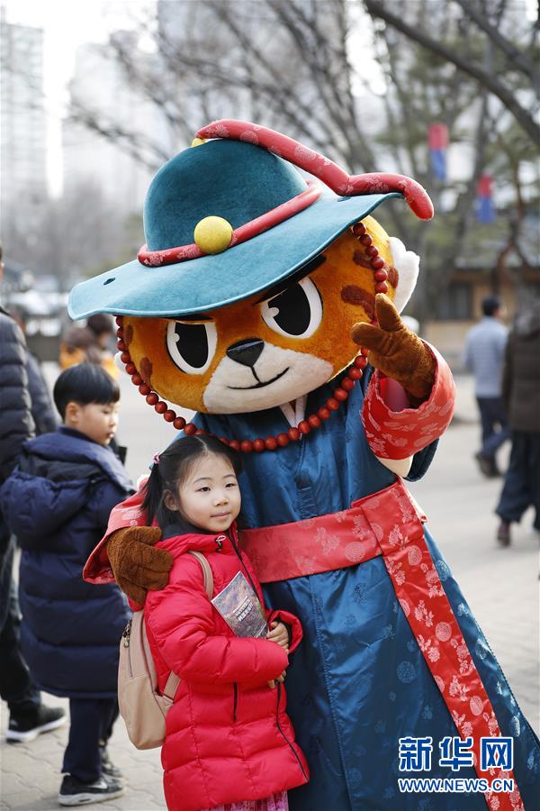2月5日,在韓國(guó)京畿道龍仁市的韓國(guó)民俗村,一名中國(guó)小朋友和工作人員扮成的玩偶合影。 雖然中國(guó)人過春節(jié)的傳統(tǒng)是返鄉(xiāng)回家,但越來越多的國(guó)人選擇在春節(jié)期間走出國(guó)門,利用春節(jié)假期外出旅游。 新華社記者 王婧嬙 攝