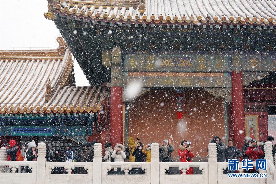 2月14日,游客在雪中游覽北京故宮。 當(dāng)日,北京降雪,大批游人來到故宮游覽賞雪。 新華社記者 鞠煥宗 攝