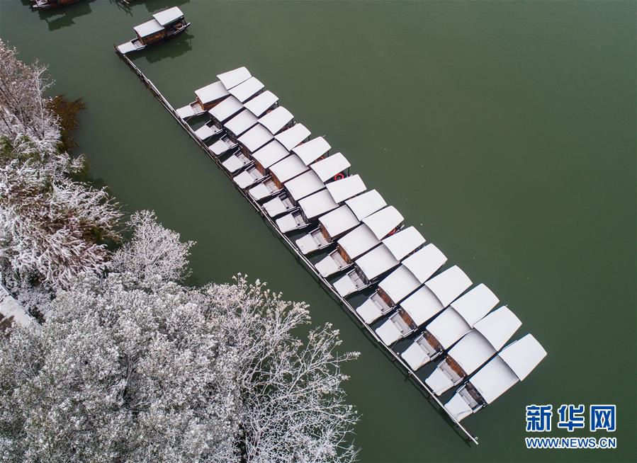 12月9日,游船行駛在烏鎮(zhèn)景區(qū)的河道內(nèi)。 受冷空氣影響,浙江省桐鄉(xiāng)市迎來大范圍降雪,千年古鎮(zhèn)烏鎮(zhèn)被厚厚的白雪覆蓋。小橋流水、白墻黑瓦的江南水鄉(xiāng)古鎮(zhèn),呈現(xiàn)出冬日雪鄉(xiāng)的獨特韻味,吸引各地游客前來觀賞。 新華社記者 徐昱 攝
