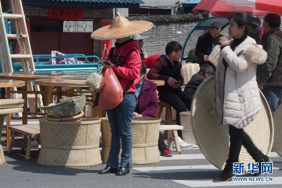 3月12日,人們?cè)诟=ㄎ湟纳健安耦^會(huì)”上采購(gòu)傳統(tǒng)竹制品。
