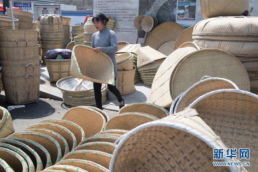 3月12日,人們?cè)诟=ㄎ湟纳健安耦^會(huì)”上采購(gòu)傳統(tǒng)竹制品。