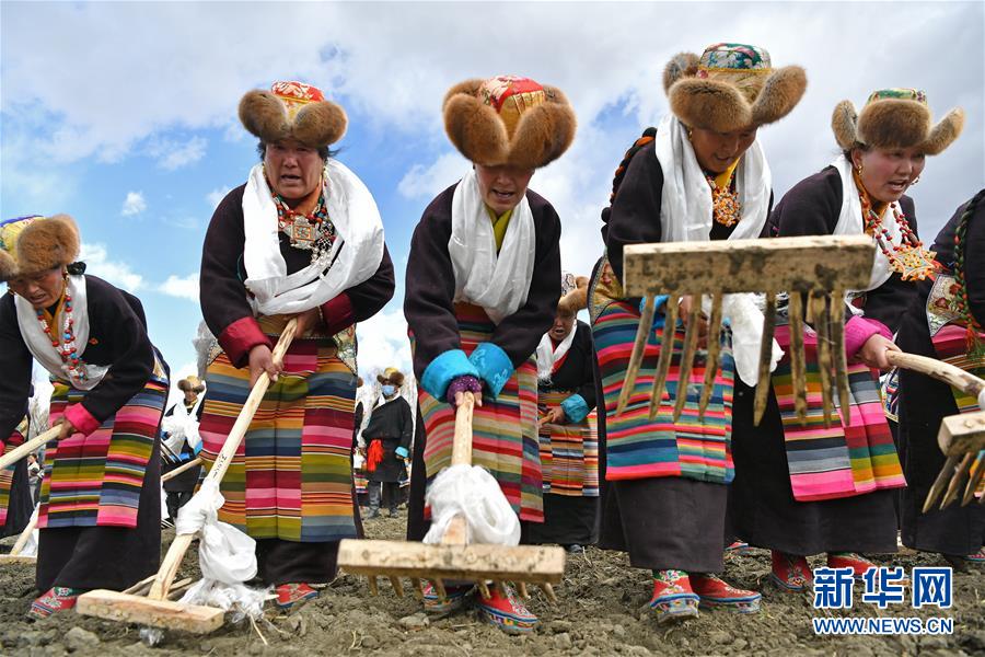 3月16日,山南市乃東區(qū)克松社區(qū)居民在開耕儀式上。 當(dāng)日,西藏各地男女老幼身著節(jié)日盛裝,駕著一輛輛由彩旗、花朵裝扮一新的拖拉機(jī),涌向待墾的農(nóng)田,載歌載舞迎來一年一度的開耕儀式。 新華社記者 晉美多吉 攝