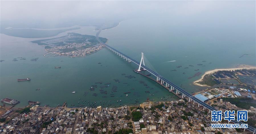 這是3月18日無人機拍攝的海南海文大橋。3月18日,中國首座跨越地震活動斷層的跨海大橋——海南海文大橋建成通車。海文大橋(原名鋪前大橋)連接海口市演豐鎮(zhèn)和文昌市鋪前鎮(zhèn),全長5.597公里,其中跨海大橋長約3.959公里。大橋通車后,從??诘轿牟伹版?zhèn)的路程將由原來的1小時30分鐘縮短至約20分鐘。 新華社記者郭程攝