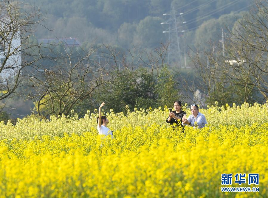 3月19日,游人在下涯鎮(zhèn)油菜花海中游玩。近日,浙江省建德市下涯鎮(zhèn)油菜花盛開,吸引不少游客前來踏春。 新華社記者翁忻旸攝