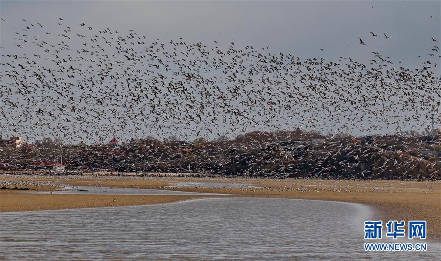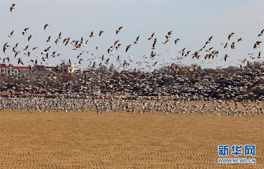 4月4日,一群候鳥(niǎo)在秦皇島市沿海濕地飛翔、休憩。近日,大批候鳥(niǎo)飛抵河北省秦皇島市沿海濕地,出現(xiàn)“萬(wàn)鳥(niǎo)臨?!逼嬗^。秦皇島沿海濕地鳥(niǎo)類食物豐富,每年春、秋兩季,大批候鳥(niǎo)遷徙經(jīng)過(guò)這里。新華社記者 楊世堯 攝