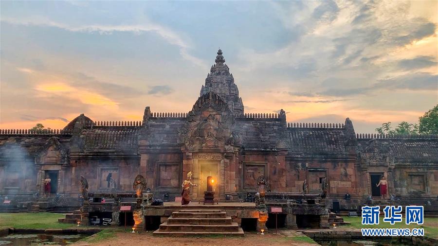 4月5日,在泰國武里南府,當(dāng)?shù)嘏源虬绯上膳臉幼釉谂羶z隆寺前跳舞。 一年一度的“登帕儂隆山節(jié)”在泰國東北部毗鄰柬埔寨的武里南府帕儂隆山舉辦。當(dāng)?shù)厝艘怨叛b巡游展示獨(dú)特的傳統(tǒng)文化,希望能吸引更多外國游客、促進(jìn)當(dāng)?shù)芈糜螛I(yè)發(fā)展。 新華社記者 楊舟 攝