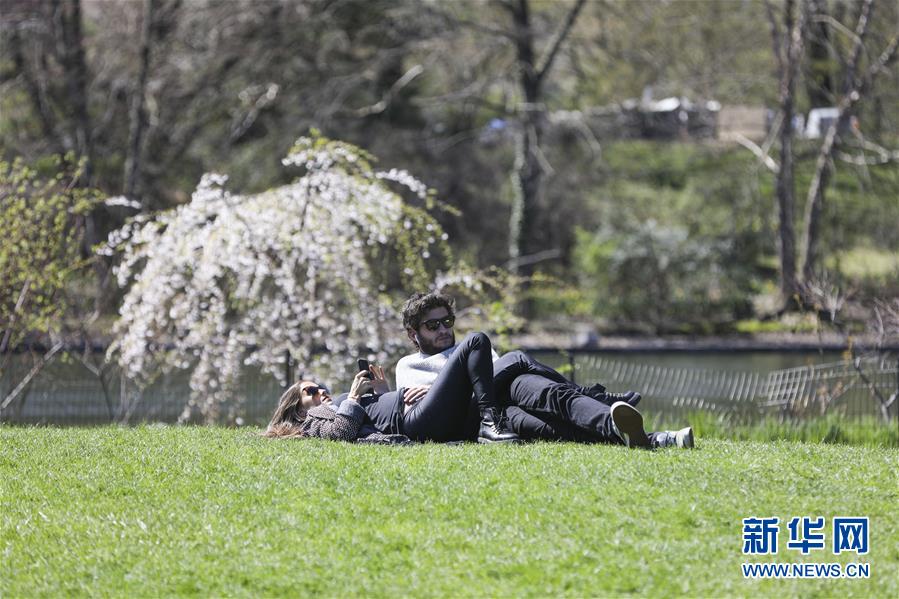 4月16日,人們?cè)诿绹?guó)紐約中央公園享受春光。 新華社記者 王迎 攝