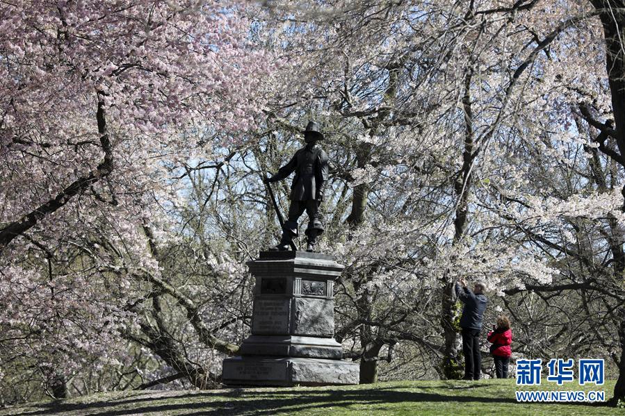 4月16日,人們?cè)诿绹?guó)紐約中央公園游覽。 新華社記者 王迎 攝