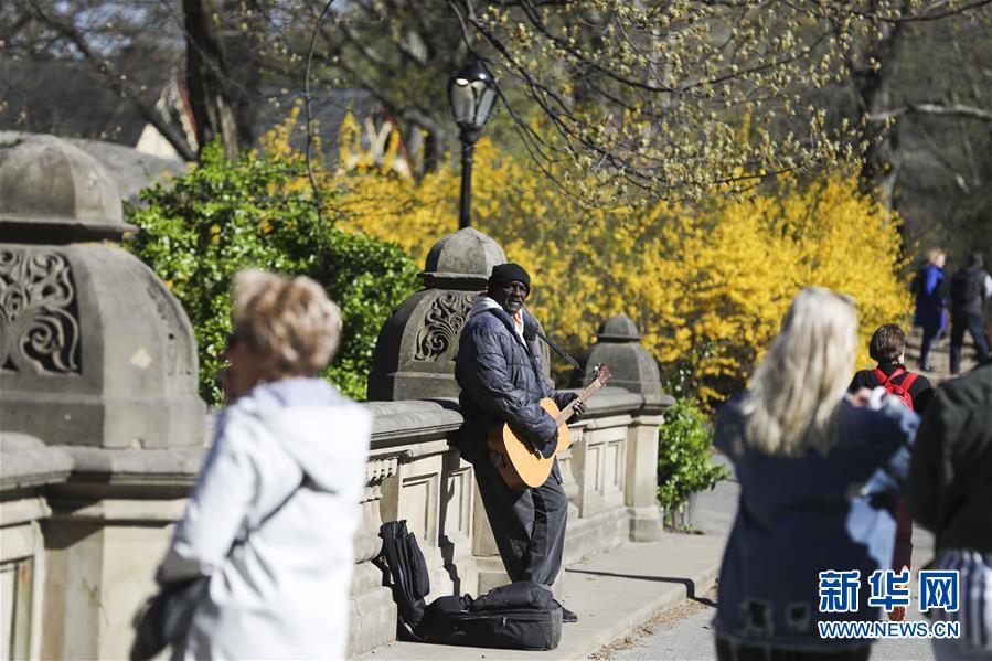 4月16日,一名男子在美國紐約中央公園唱歌。 新華社記者 王迎 攝