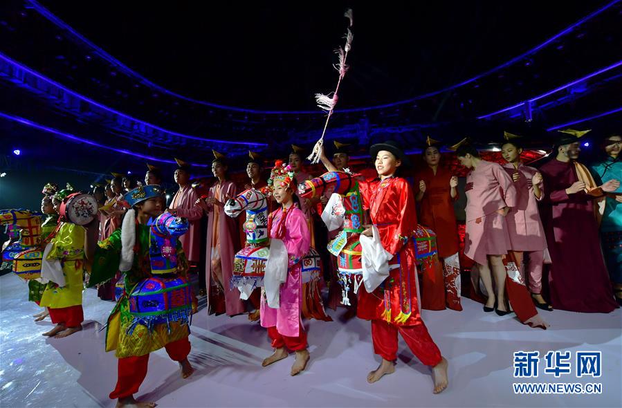 4月27日,表演結束后,模特在向觀眾致意。 當日,土樓光語國際時尚大秀在福建省南靖縣的土樓裕昌樓內舉行。這場融匯文化、時尚與旅游元素的大秀,通過傳統(tǒng)與時尚的有機融合,展現(xiàn)南靖土樓及文化的魅力和風采。 新華社記者魏培全攝