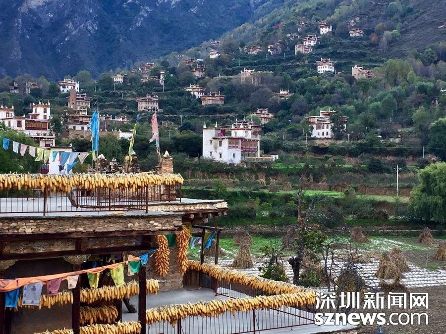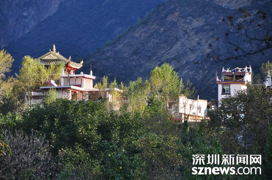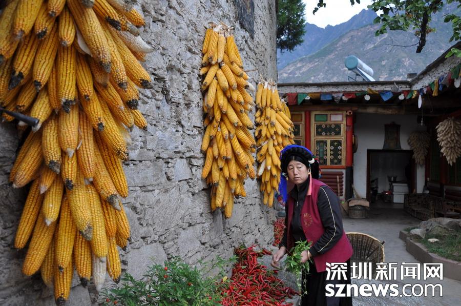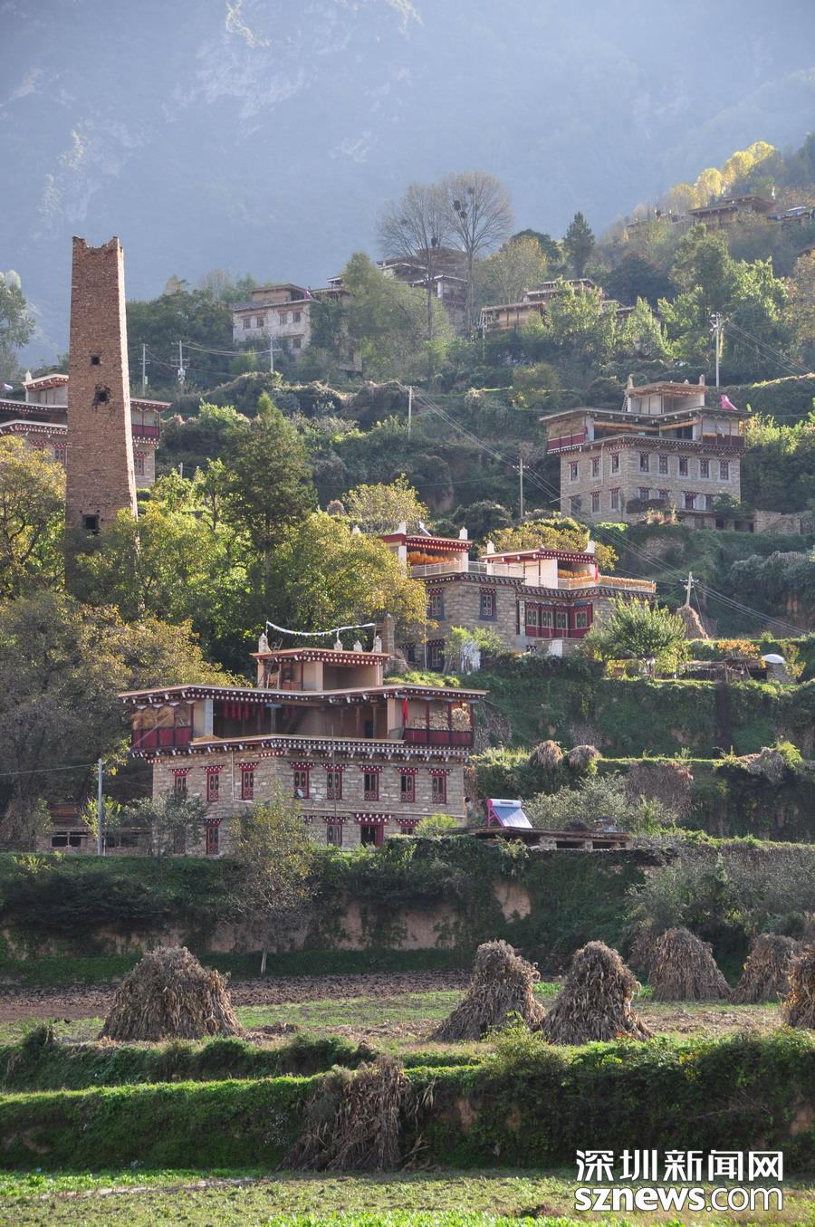 丹巴西距成都348公里,是從事農(nóng)業(yè)生產(chǎn)的嘉絨藏族聚居的地方。當(dāng)?shù)厝司幼〉恼右话阈藿ㄔ谙蜿柕钠铝荷?,由幾十戶甚至上百戶人家組成。一幢幢外形美觀,風(fēng)格統(tǒng)一的寨房和碉樓依著起伏的山勢(shì)而建,構(gòu)成一幅幅優(yōu)美的畫卷。李仁奇攝