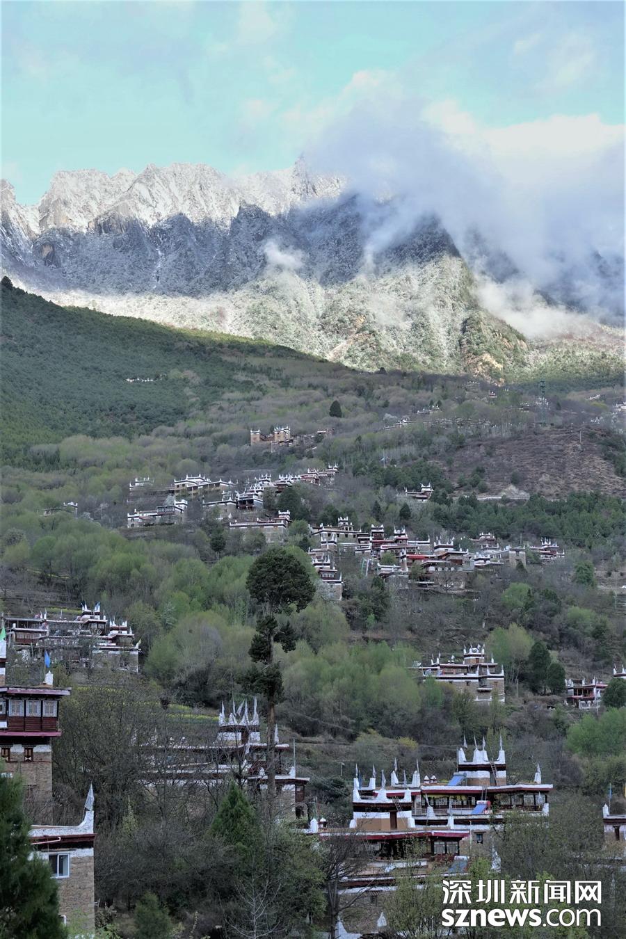 “甲居”,藏語是百戶人家之意。甲居藏寨距丹巴縣城約8公里,從大金川河谷層層向上攀緣,一直伸延到卡帕瑪群峰腳下。在相對(duì)高差近千米的山坡上,一幢幢藏式樓房和碉樓灑落在綠樹鮮花叢中,將田園牧歌式的風(fēng)光展示在人們眼前。李仁奇攝