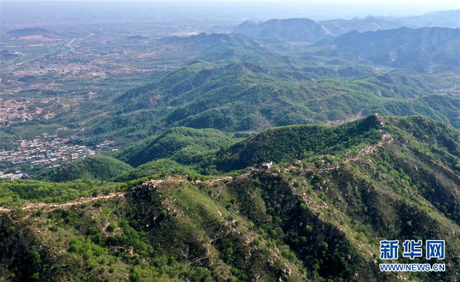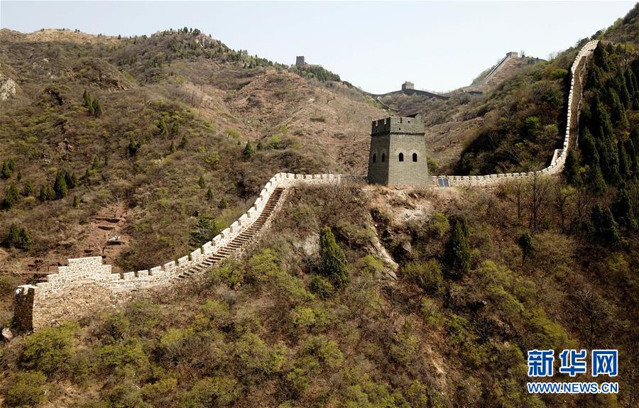 這是4月19日拍攝的黃崖關(guān)長(zhǎng)城景區(qū)(無人機(jī)拍攝)。新華社記者 李然 攝