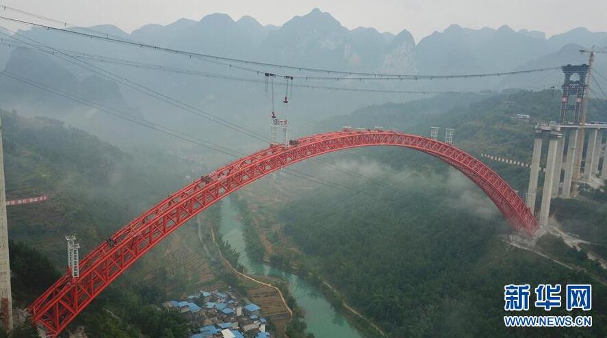 9月12日使用無(wú)人機(jī)拍攝的大小井特大橋。目前,橫跨在貴州省羅甸縣大井河上的大小井特大橋建設(shè)進(jìn)入沖刺階段。大小井特大橋全長(zhǎng)1.5公里,主跨450米,是世界最大跨徑上承式鋼管混凝土拱橋。據(jù)了解,該橋是平塘至羅甸高速公路關(guān)鍵性工程,對(duì)打通貴州“斷頭路”,助推滇黔桂石漠化片區(qū)脫貧攻堅(jiān)具有重要意義。新華社記者劉續(xù)攝