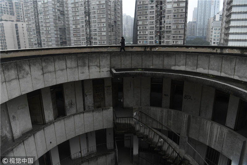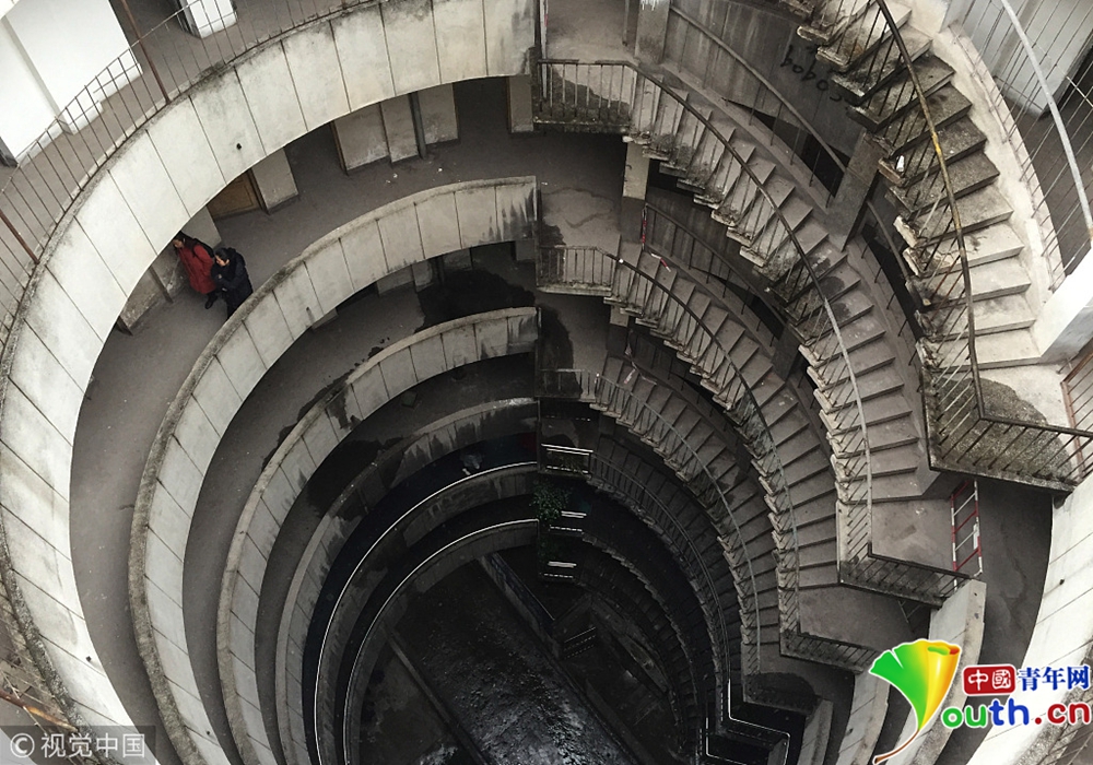 2018年12月11日,重慶紅旗河溝汽車站辦公大樓。八層的圓筒型轉轉樓,站在樓里往上望,可以看見碗口大的天空。圖片作者:尋常