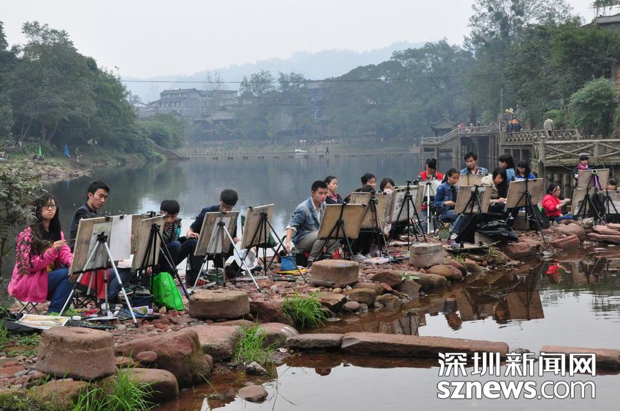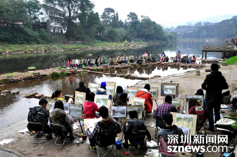 古鎮(zhèn)吸引很多寫生的學生 李 仁奇 攝