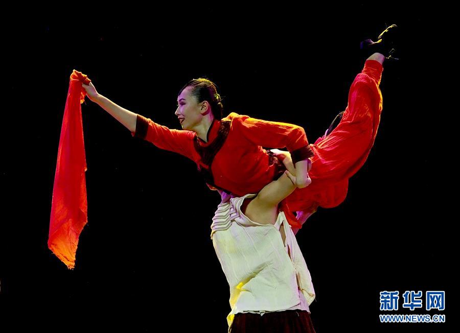 5月16日,在第十八屆群星獎決賽舞蹈類作品比賽中,演員在表演《雅卓沖諧》。 當日,作為第十二屆中國藝術節(jié)的重要內(nèi)容,第十八屆群星獎決賽在上海東方藝術中心啟動。84個入圍決賽作品將按照舞蹈、音樂、戲劇、曲藝4個門類進行7場比賽,最終評出20個獲獎作品。 新華社記者 任瓏 攝