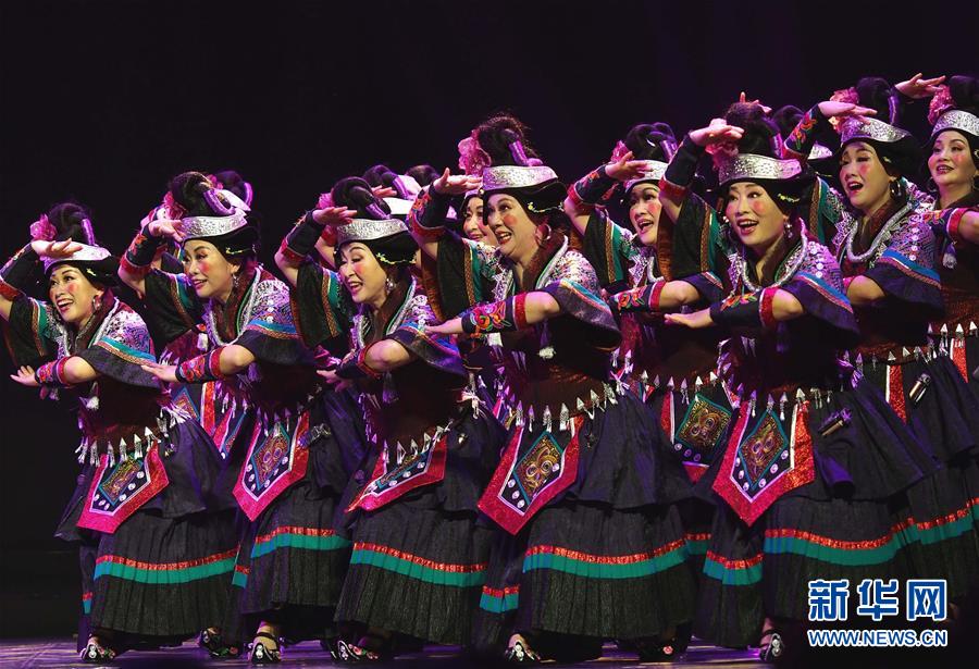 5月16日,在第十八屆群星獎決賽舞蹈類作品比賽中,演員在表演《苗家阿婆笑哈哈》。 當日,作為第十二屆中國藝術節(jié)的重要內(nèi)容,第十八屆群星獎決賽在上海東方藝術中心啟動。84個入圍決賽作品將按照舞蹈、音樂、戲劇、曲藝4個門類進行7場比賽,最終評出20個獲獎作品。 新華社記者 任瓏 攝