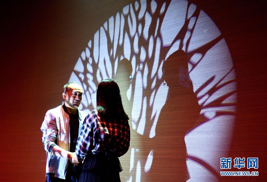 5月20日,螞蟻森林種樹人張喜旺(左)與女兒張培新(右)表演話劇。新華社記者金良快攝