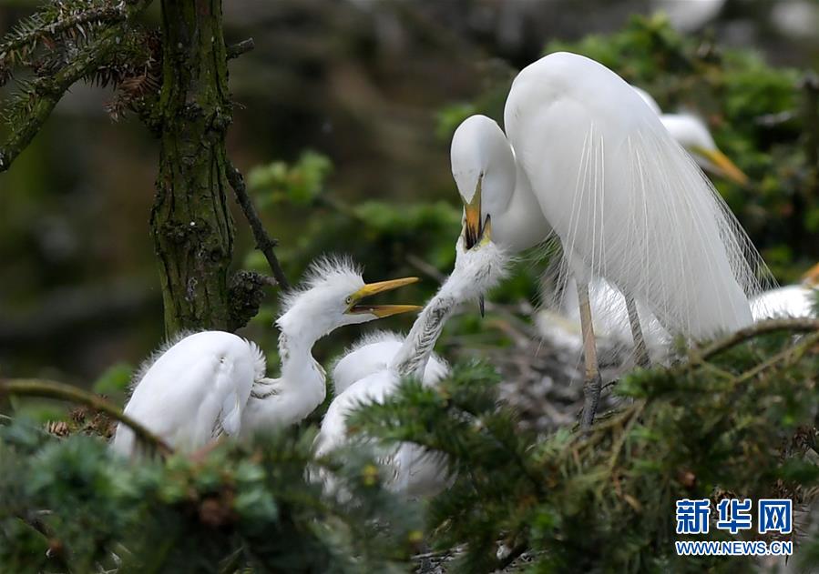 在江西省南昌市新建區(qū)象山森林公園內(nèi),白鷺和自己的雛鳥在一起(5月21日攝)。 近日,在江西省南昌市新建區(qū)象山森林公園內(nèi),已安家筑巢的大批鷺鳥陸續(xù)孵化出了后代。象山森林公園有著“鷺鳥王國”的美譽,生態(tài)環(huán)境良好,每年都會吸引白鷺、蒼鷺、夜鷺等種類的鷺鳥飛抵棲息和繁衍后代。 新華社記者 彭昭之 攝