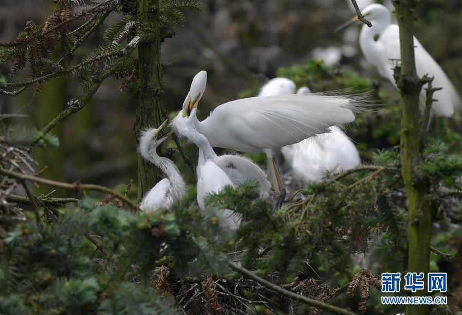 在江西省南昌市新建區(qū)象山森林公園內(nèi),白鷺和自己的雛鳥在一起(5月21日攝)。 近日,在江西省南昌市新建區(qū)象山森林公園內(nèi),已安家筑巢的大批鷺鳥陸續(xù)孵化出了后代。象山森林公園有著“鷺鳥王國(guó)”的美譽(yù),生態(tài)環(huán)境良好,每年都會(huì)吸引白鷺、蒼鷺、夜鷺等種類的鷺鳥飛抵棲息和繁衍后代。 新華社記者 彭昭之 攝
