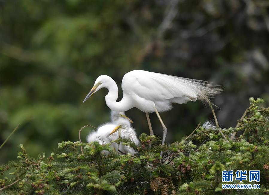 在江西省南昌市新建區(qū)象山森林公園內(nèi),白鷺和自己的雛鳥在一起(5月21日攝)。 近日,在江西省南昌市新建區(qū)象山森林公園內(nèi),已安家筑巢的大批鷺鳥陸續(xù)孵化出了后代。象山森林公園有著“鷺鳥王國”的美譽(yù),生態(tài)環(huán)境良好,每年都會(huì)吸引白鷺、蒼鷺、夜鷺等種類的鷺鳥飛抵棲息和繁衍后代。 新華社記者 彭昭之 攝
