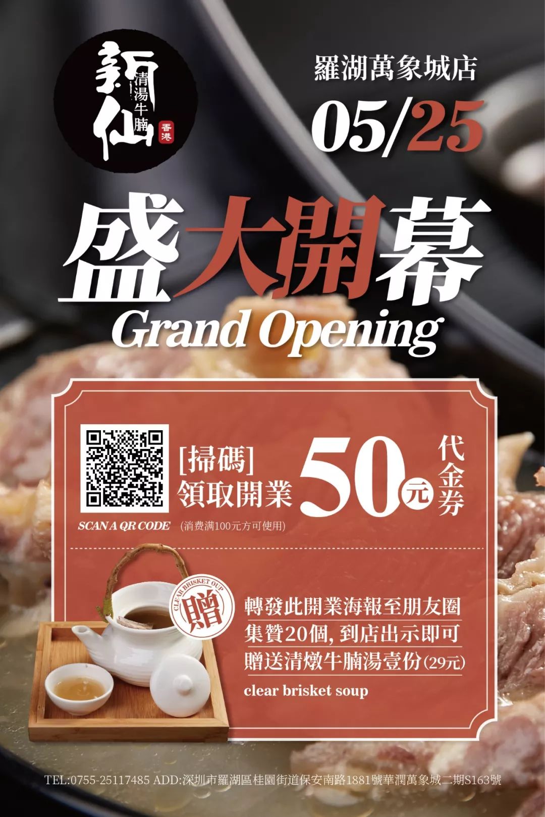 新仙精選每頭牛最精華的三個部分:崩沙腩、爽腩和坑腩,每天凌晨5點采運最新鮮的食材到店,再用文火煮制24小時,保證湯鮮肉滑、牛腩的肉汁足夠鮮美。25號到店同樣有驚喜,別忘了先掃碼領券哦!還等什么?趕緊約上朋友一起來享受被米其林承包一日三餐的幸福吧!