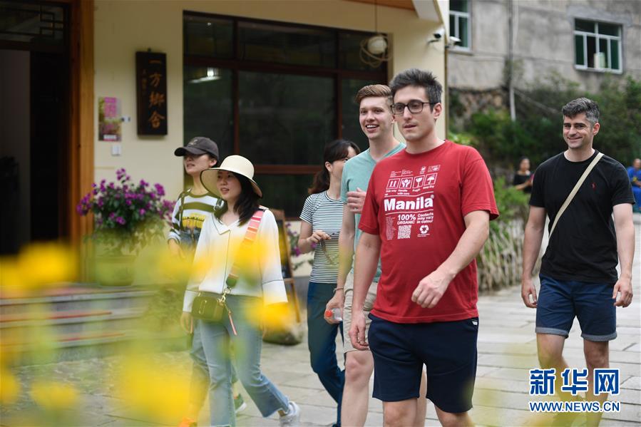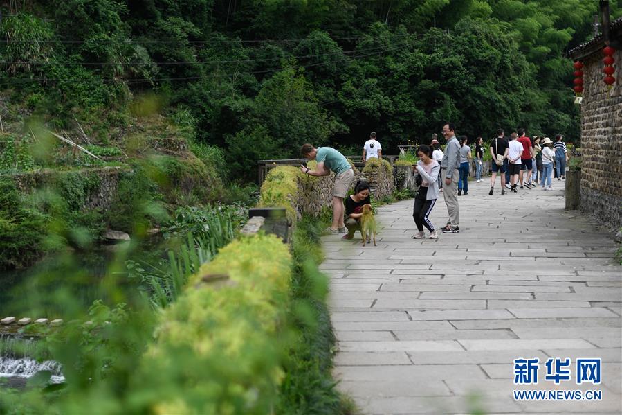 中外游客在石舍村游覽(5月25日攝)。 石舍村是浙江省桐廬縣富春江鄉(xiāng)村慢生活體驗區(qū)中的三個村落之一,位置偏僻,依溪而居,風景秀美。近年來,石舍村結合古建筑保護工作,在清潔、美化村莊的基礎上,對一些廢棄古建筑進行修繕,引入咖啡館、民宿等文化創(chuàng)意類項目,優(yōu)良的生態(tài)環(huán)境和濃郁的文化氛圍吸引大批游客前來體驗,小山村走上了一條發(fā)展美麗經濟之路。2018年,石舍村接待游客10萬8千余人次,旅游經營凈收入1260余萬元。 新華社記者 黃宗治 攝