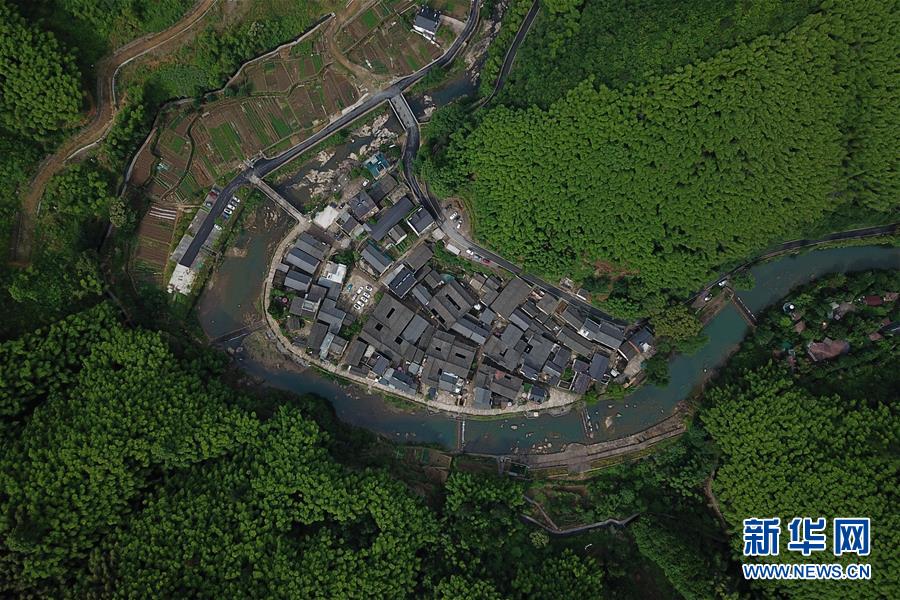 5月26日無人機拍攝的富春江鎮(zhèn)石舍村。村莊依山傍水,風景秀美。 石舍村是浙江省桐廬縣富春江鄉(xiāng)村慢生活體驗區(qū)中的三個村落之一,位置偏僻,依溪而居,風景秀美。近年來,石舍村結合古建筑保護工作,在清潔、美化村莊的基礎上,對一些廢棄古建筑進行修繕,引入咖啡館、民宿等文化創(chuàng)意類項目,優(yōu)良的生態(tài)環(huán)境和濃郁的文化氛圍吸引大批游客前來體驗,小山村走上了一條發(fā)展美麗經濟之路。2018年,石舍村接待游客10萬8千余人次,旅游經營凈收入1260余萬元。 新華社記者 黃宗治 攝