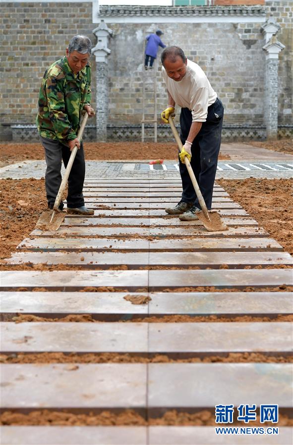 4月28日,在江西省南昌市南昌縣岡上鎮(zhèn)省級文物保護單位“吳氏家廟”內,搶修工程隊的工人在鋪磚。近年來,江西省南昌市南昌縣推動古村落保護工作。2019年,首批搶修工程隊進駐南昌縣岡上鎮(zhèn),對當?shù)刂氖〖壩奈锉Wo單位“吳氏家廟”及縣級文物保護單位“吳培荊堂古建筑群”進行搶救性維修。同時當?shù)卣€制定文旅規(guī)劃,讓文物保護與觀光旅游相結合,推動鄉(xiāng)村振興。 新華社記者 彭昭之 攝