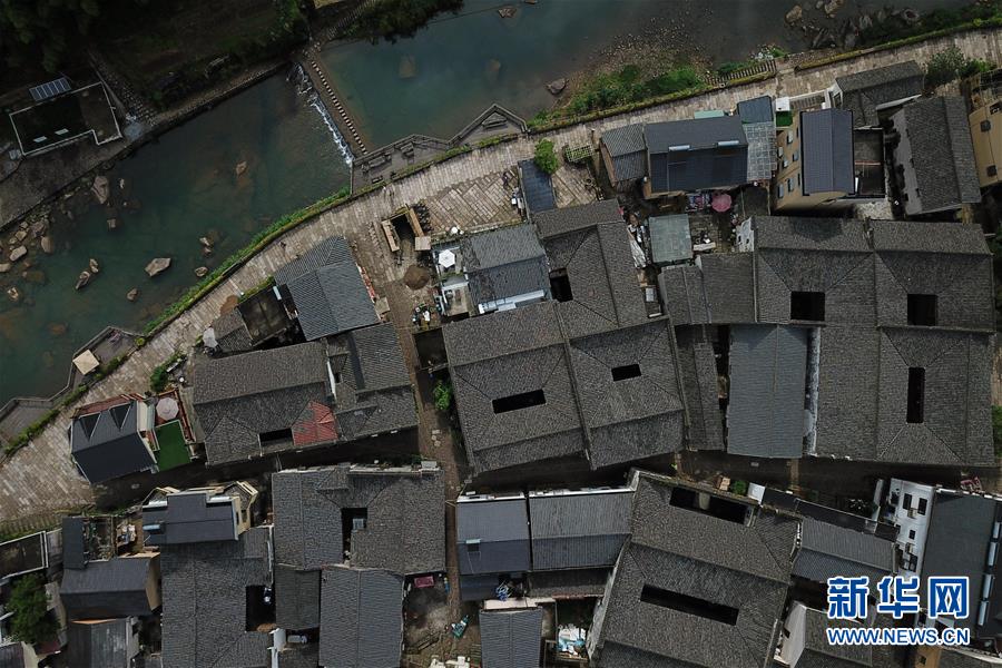 5月26日無人機拍攝的富春江鎮(zhèn)石舍村的古建筑群。 石舍村是浙江省桐廬縣富春江鄉(xiāng)村慢生活體驗區(qū)中的三個村落之一,位置偏僻,依溪而居,風景秀美。近年來,石舍村結合古建筑保護工作,在清潔、美化村莊的基礎上,對一些廢棄古建筑進行修繕,引入咖啡館、民宿等文化創(chuàng)意類項目,優(yōu)良的生態(tài)環(huán)境和濃郁的文化氛圍吸引大批游客前來體驗,小山村走上了一條發(fā)展美麗經濟之路。2018年,石舍村接待游客10萬8千余人次,旅游經營凈收入1260余萬元。 新華社記者 黃宗治 攝