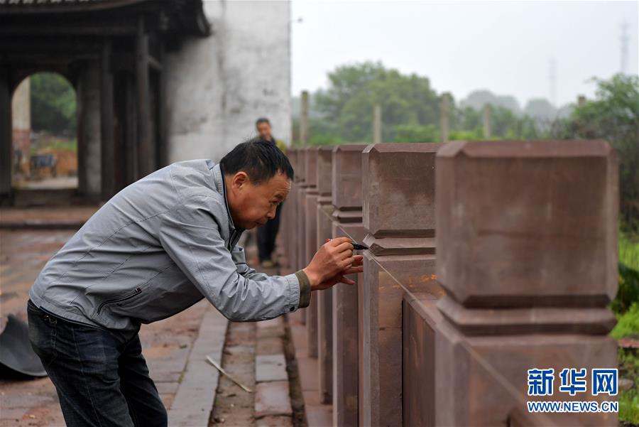 4月28日,在江西省南昌市南昌縣岡上鎮(zhèn)省級文物保護單位“吳氏家廟”內,搶修工程隊的工人在打磚刻石。近年來,江西省南昌市南昌縣推動古村落保護工作。2019年,首批搶修工程隊進駐南昌縣岡上鎮(zhèn),對當?shù)刂氖〖壩奈锉Wo單位“吳氏家廟”及縣級文物保護單位“吳培荊堂古建筑群”進行搶救性維修。同時當?shù)卣€制定文旅規(guī)劃,讓文物保護與觀光旅游相結合,推動鄉(xiāng)村振興。 新華社記者 彭昭之 攝