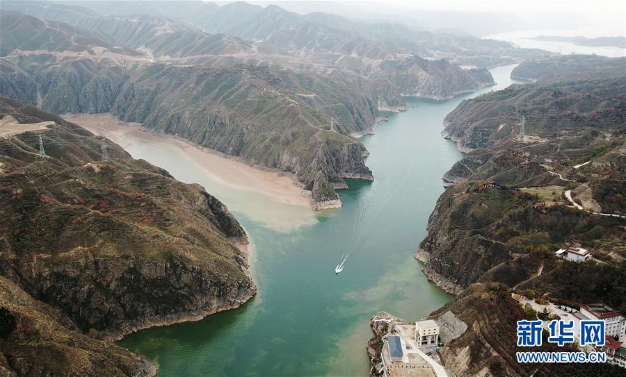 這是10月24日無人機(jī)拍攝的劉家峽水庫大壩。 新華社記者 陳斌 攝